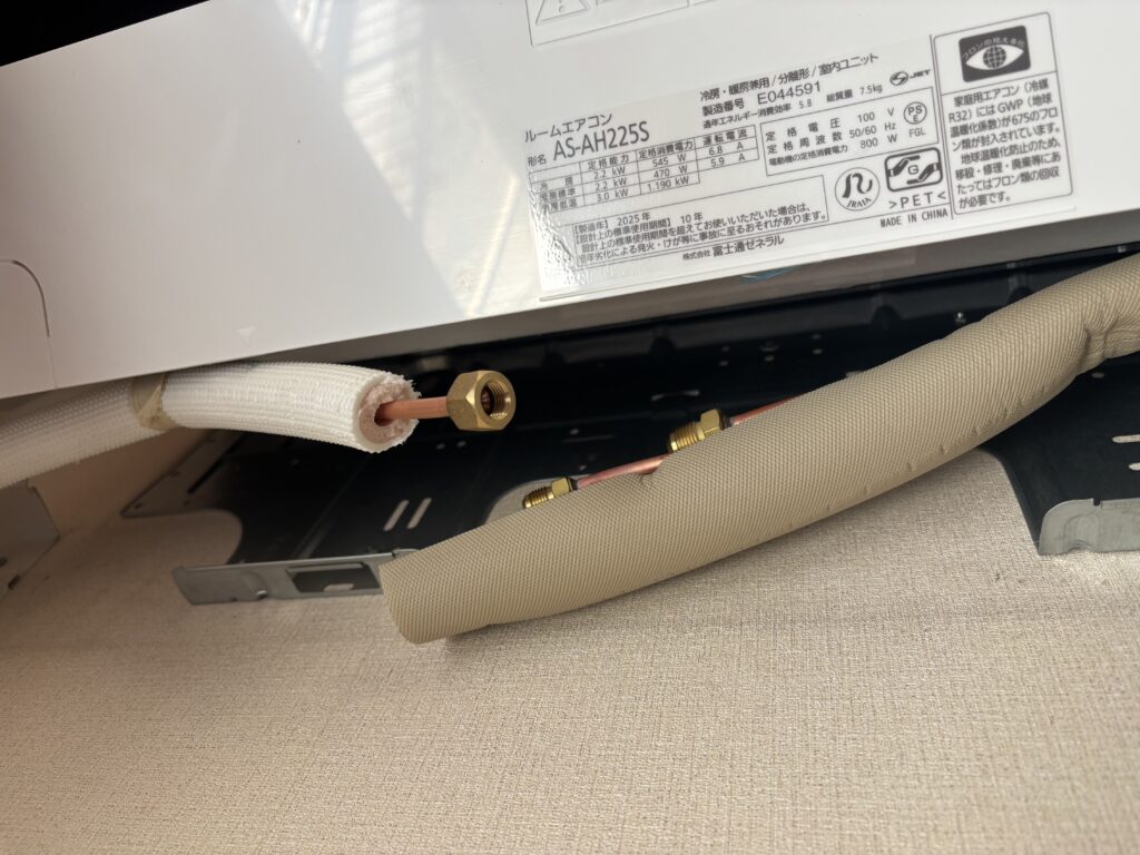 トルクレンチで接続して結露防止のために断熱材を巻いて