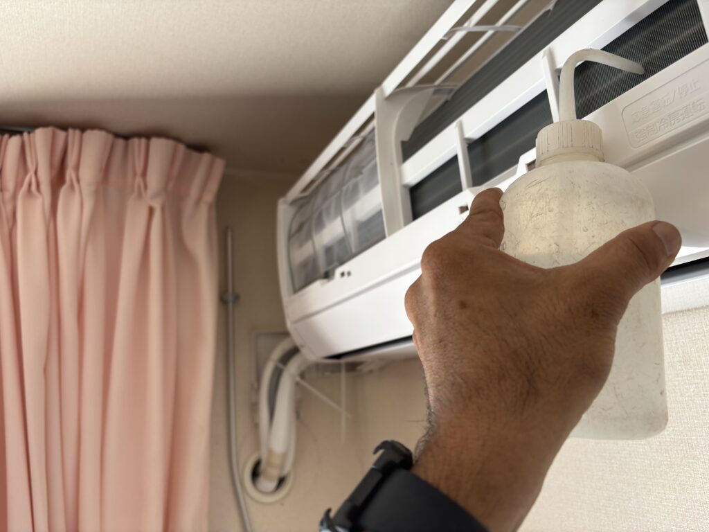 エアコン本体の勾配が取れているかいつもの水漏れチェック