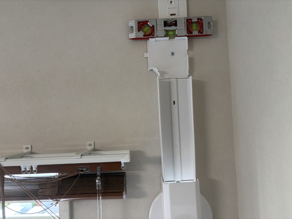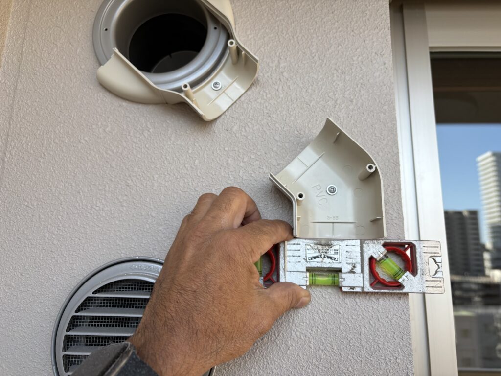 水平器を使い45°と水平をとってカバーを取り付けていきます