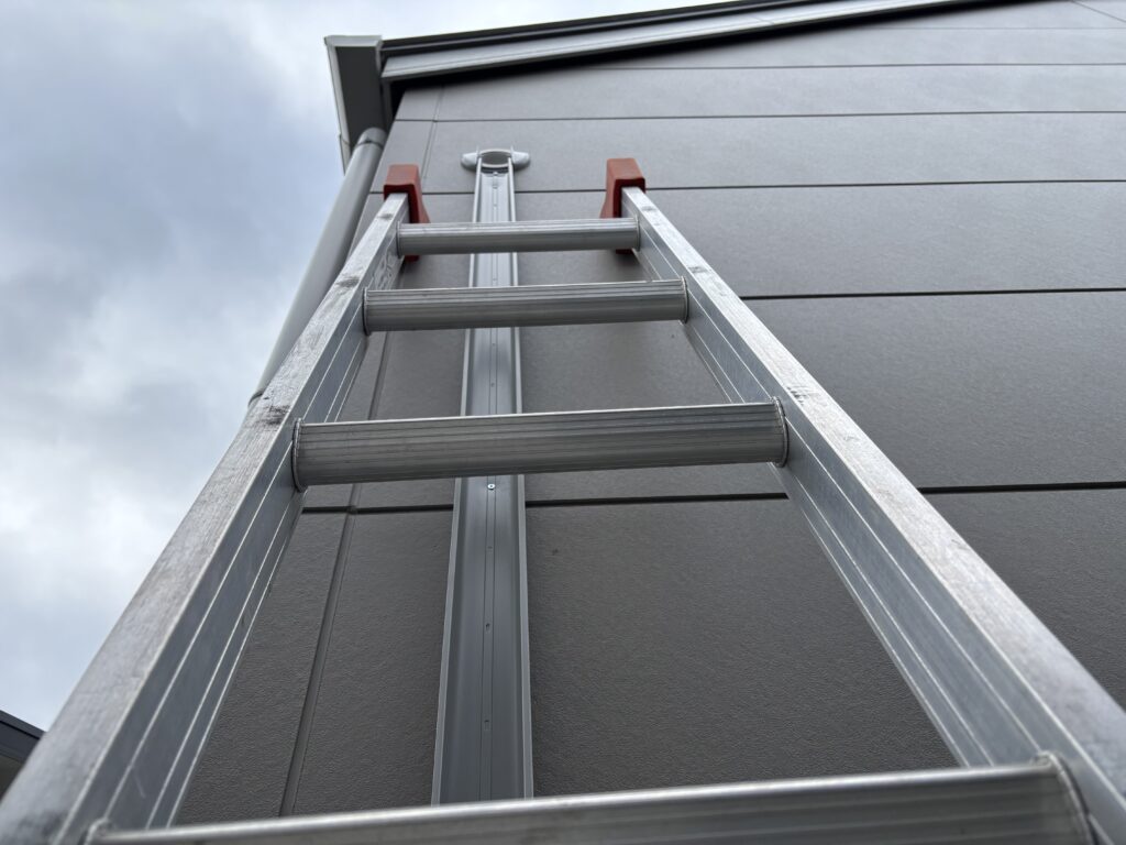 室外は二段梯子を立てて高所作業
