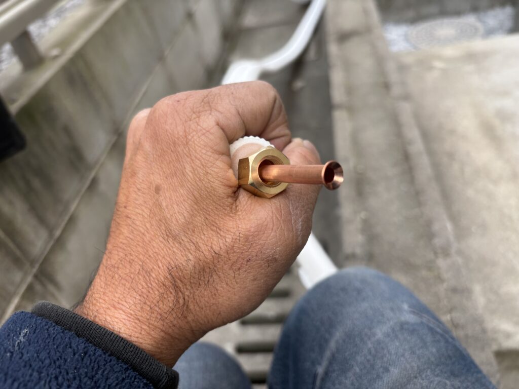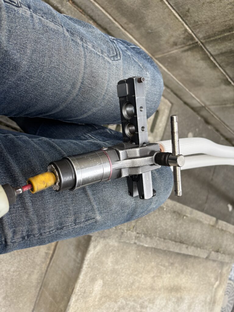 外でエアコン配管のフレアを作り