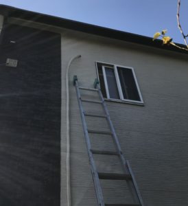 お客様の要望では側面側の壁に設置という事でしたが、まず壁が短く、雨戸、窓など何かと都合が悪いので今回は➕印のあるここに決定です👍