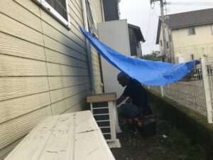 梅雨時期の雨降り対策をした鹿児島エアコン取り付け工事👷♂️
